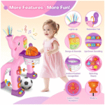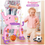 Ideal para niños de 1 a 3 años, este set está fabricado con materiales seguros y resistentes, diseñados para soportar el uso diario. Su estructura ligera facilita el montaje y transporte, lo que la convierte en una excelente opción para interiores o exteriores. Perfecta como regalo educativo, la Canasta Elefante Infantil 2 en 1 promueve la diversión, la interacción familiar y el aprendizaje a través del movimiento.