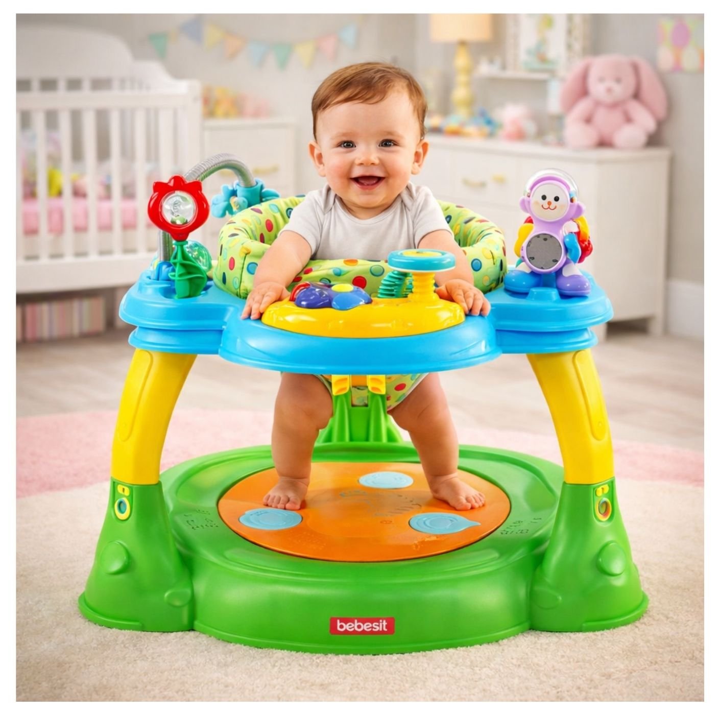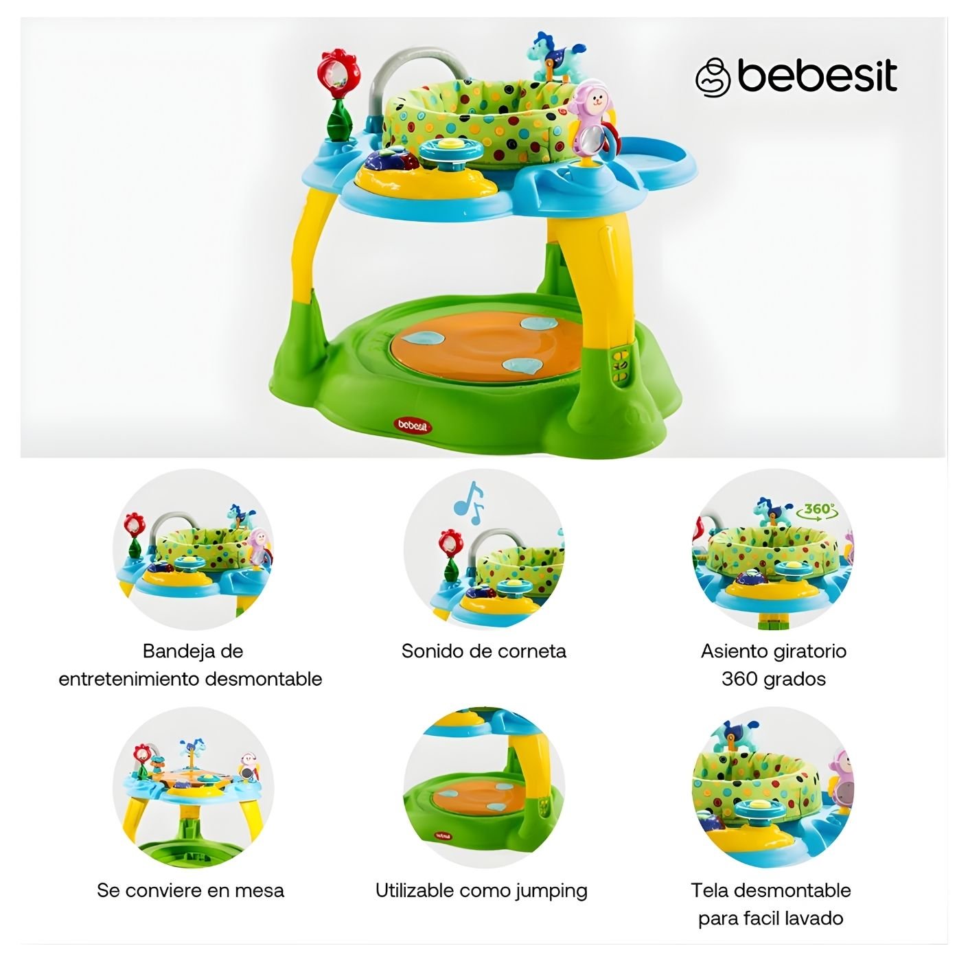 Brinda a tu bebé momentos llenos de diversión, aprendizaje y estimulación con el Centro de Entretenimiento Baby Activity Center Bebesit, diseñado para acompañar su crecimiento mientras juega y se desarrolla. Su diseño seguro, cómodo y funcional permite que tu pequeño salte, gire y explore diferentes actividades que favorecen su desarrollo motor y sensorial, convirtiéndose en un aliado ideal para el entretenimiento diario en casa.