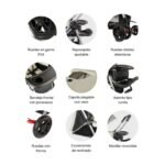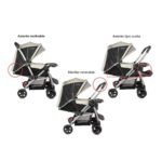 Pensado para el confort del bebé, incorpora asiento reclinable hasta 170°, reposapiés ajustable y capota extensible con visor y panel en malla, que protege del sol y el viento manteniendo una correcta ventilación. Sus 6 ruedas en goma EVA de 7 pulgadas, suspensión delantera y sistema de rueda libre garantizan una conducción suave y estable. Además, cuenta con bandeja frontal removible con portavasos, amplia canasta portaobjetos y frenos individuales en las ruedas traseras para mayor seguridad.