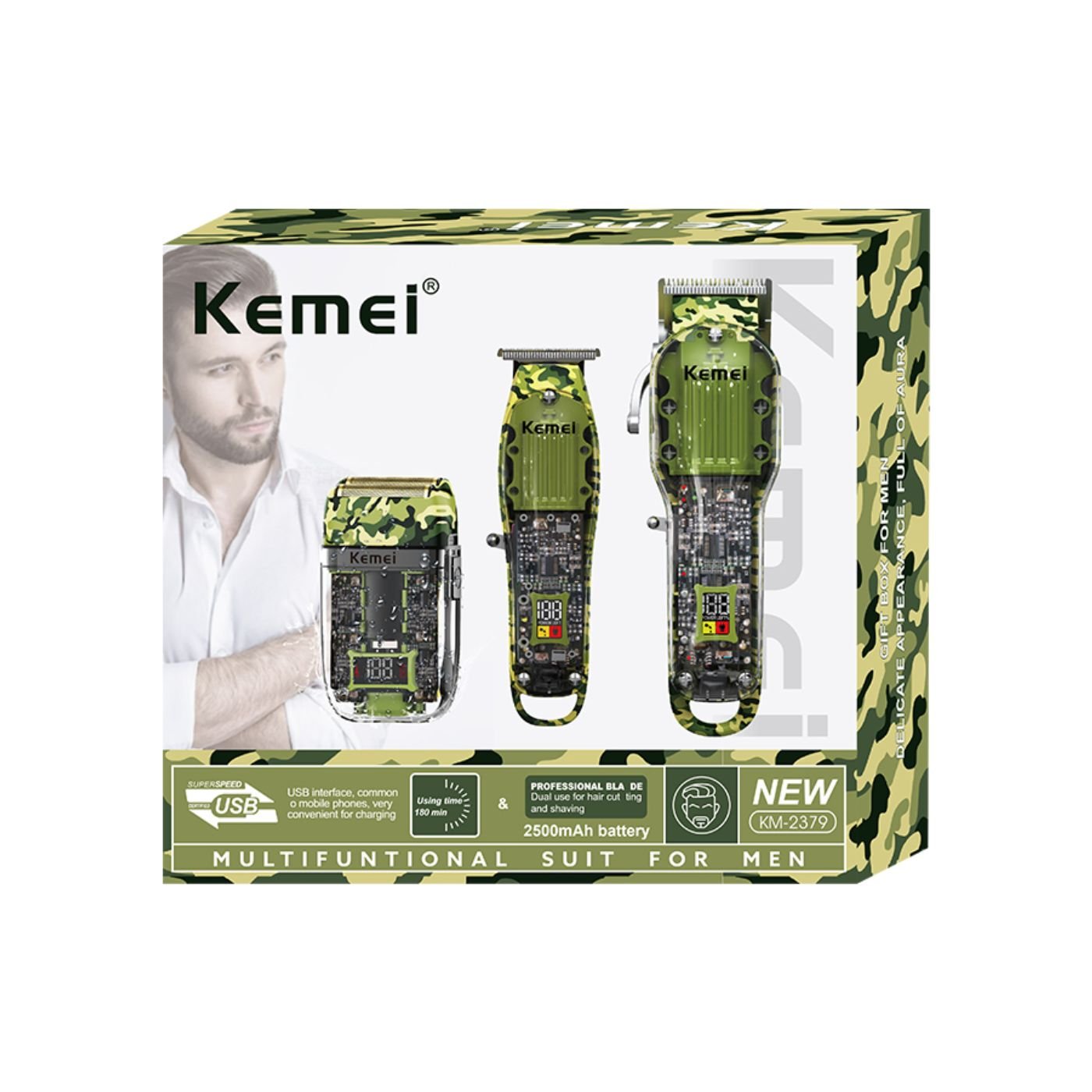 Combo Maquina Peluquera Kemei 3En1 KM-2379