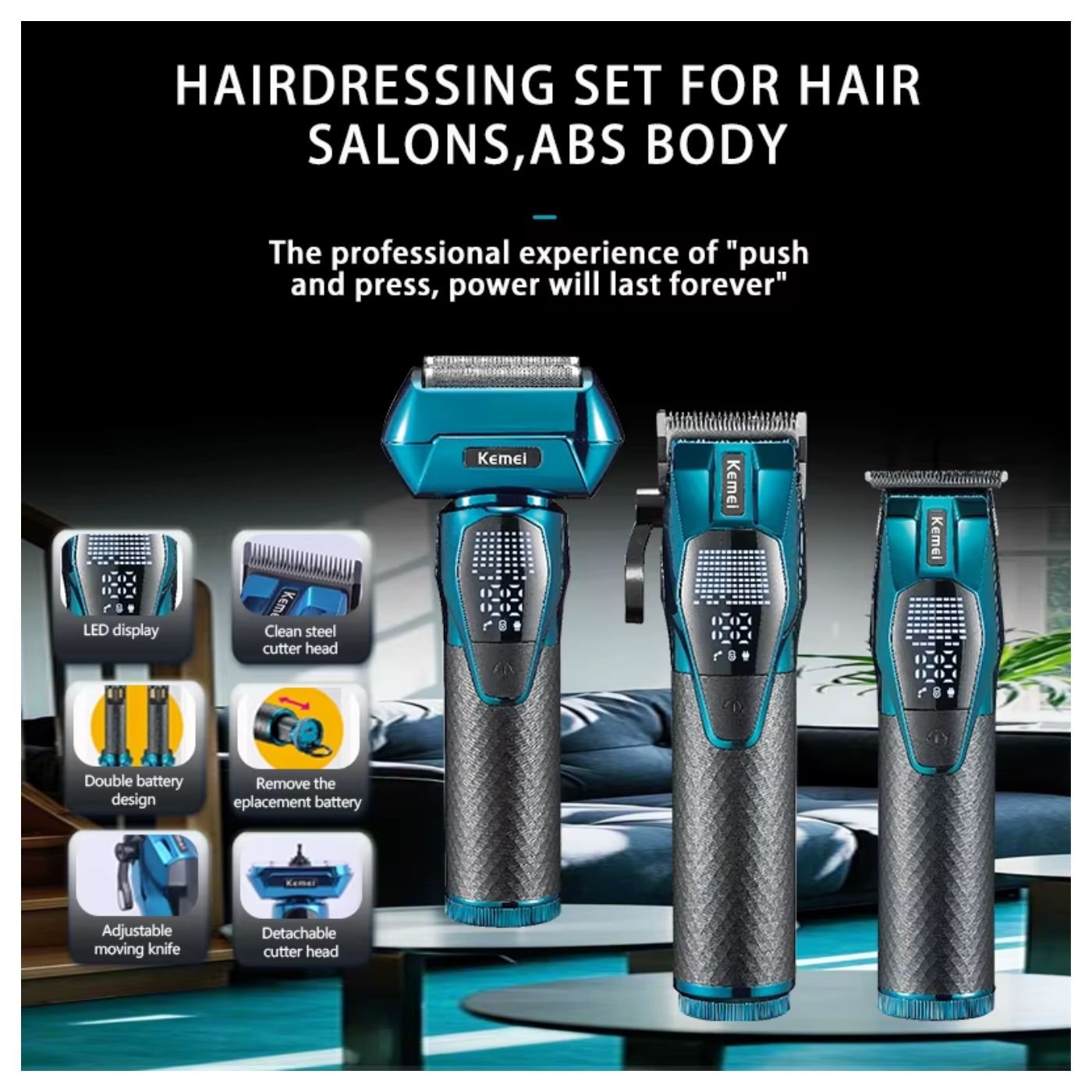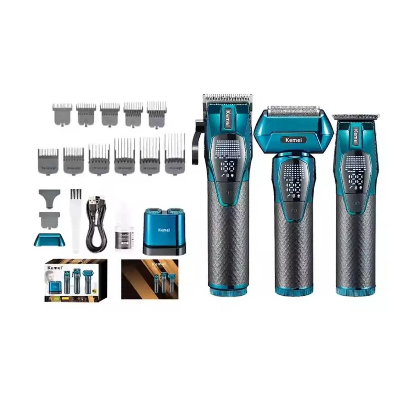 El Kemei KM-8559 es un set profesional de barbería diseñado para quienes buscan precisión, potencia y practicidad en un solo equipo. Su diseño ergonómico y su motor de alto rendimiento de 5 W ofrecen cortes suaves y uniformes, ideales tanto para uso personal como profesional.