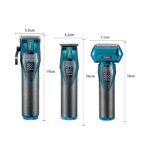 Este combo 3 en 1 incluye cortapelo, patillera y afeitadora de lámina, brindando una experiencia completa desde el corte hasta el acabado. Su batería de 2500 mAh proporciona hasta 90 minutos de autonomía, y la pantalla LED integrada muestra el nivel de carga y estado de funcionamiento. Con cuchillas de acero inoxidable y materiales resistentes, garantiza durabilidad y resultados de calidad en cada uso.