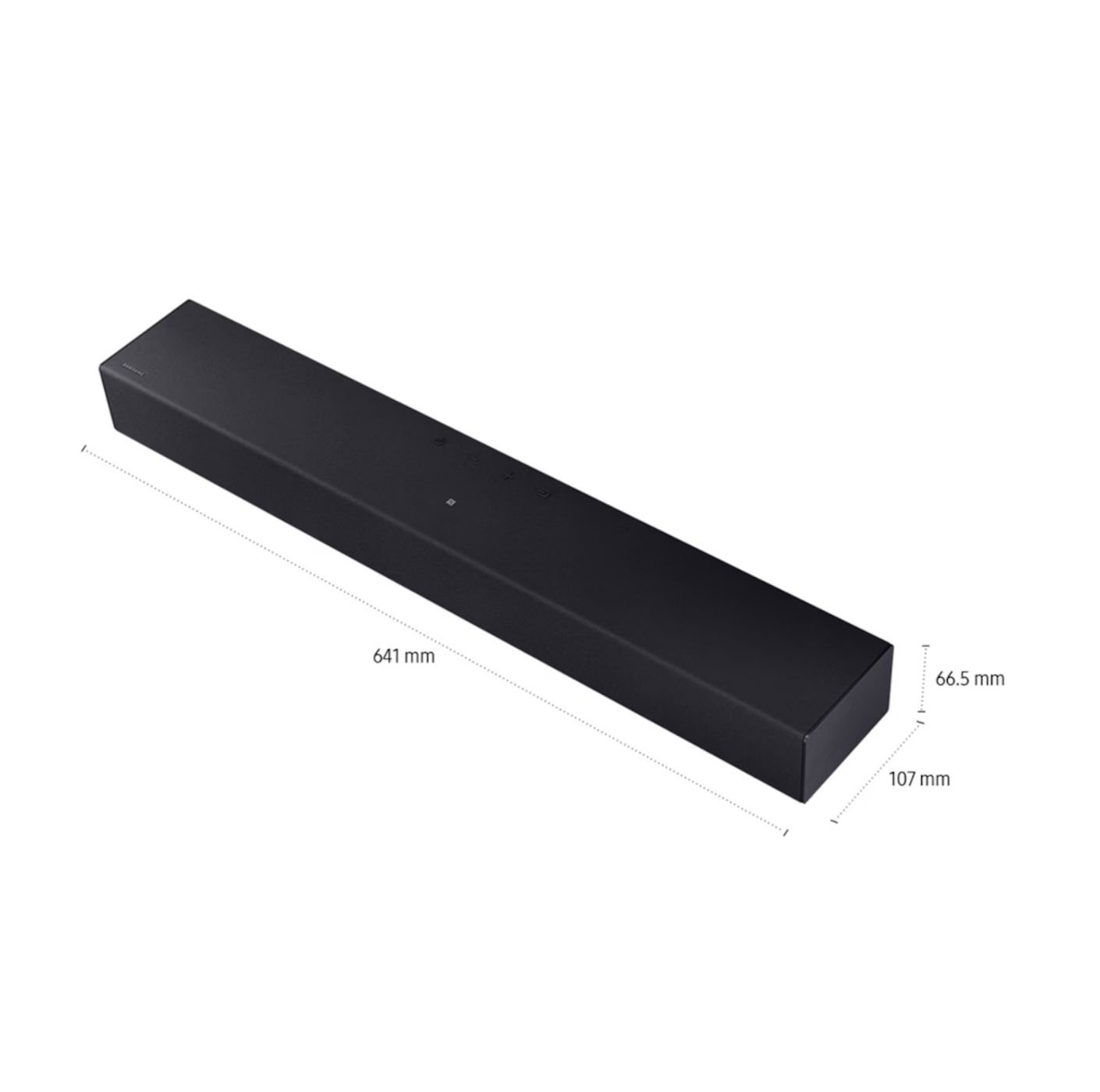 Complementando la experiencia visual, la Barra de Sonido Samsung HW-B400F potencia el audio con un sistema de 2.0 canales con Dolby Audio, mejorando la claridad de diálogos, música y efectos. Gracias a la conectividad Bluetooth y HDMI ARC, podrás disfrutar sonido envolvente con una instalación rápida y elegante, ideal para películas, series, deportes o videojuegos.