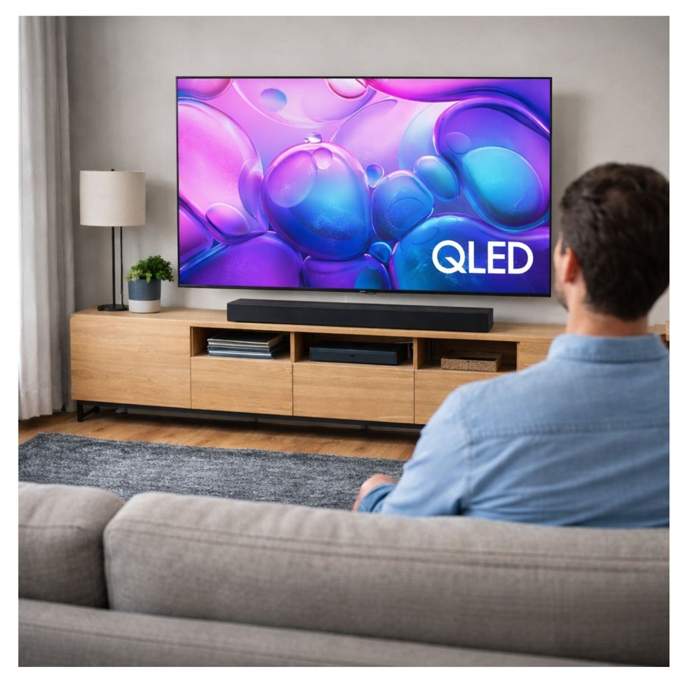 Transforma tu sala en un verdadero centro de entretenimiento con el Combo Samsung QLED 65” 4K + Barra de Sonido HW-B400F. Este televisor combina tecnología QLED de alta precisión de color, resolución 4K Ultra HD y el potente procesador Q4 Lite, que optimiza cada imagen para ofrecer escenas más nítidas, brillantes y llenas de detalle.