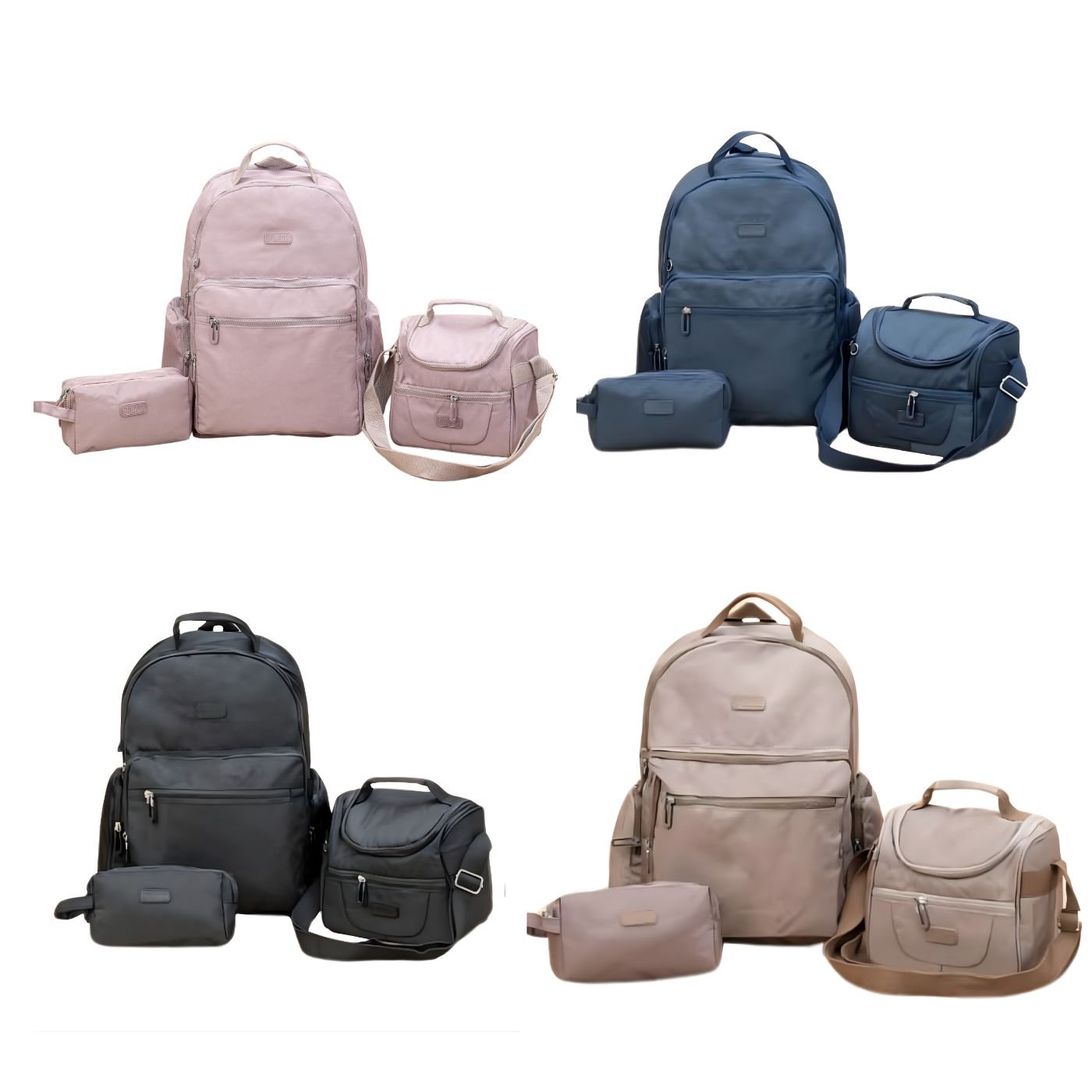 Este set se caracteriza por su excelente distribución de espacios. El morral cuenta con un tamaño amplio para cuadernos y libros, la lonchera permite transportar alimentos de manera segura y la cartuchera es ideal para organizar lápices y accesorios pequeños. Está disponible en varios colores (rosa, azul, negro y café), adaptándose a diferentes gustos y estilos.