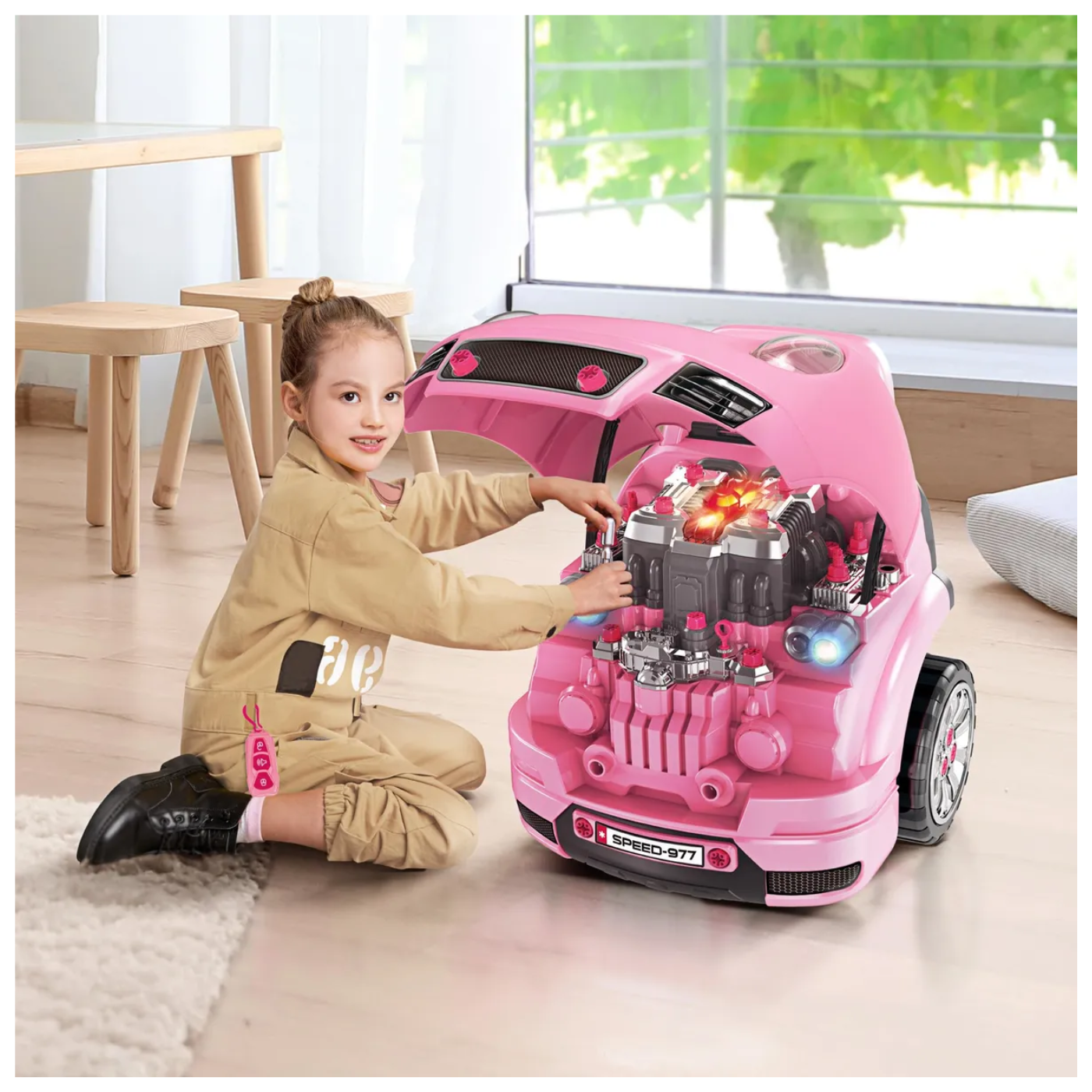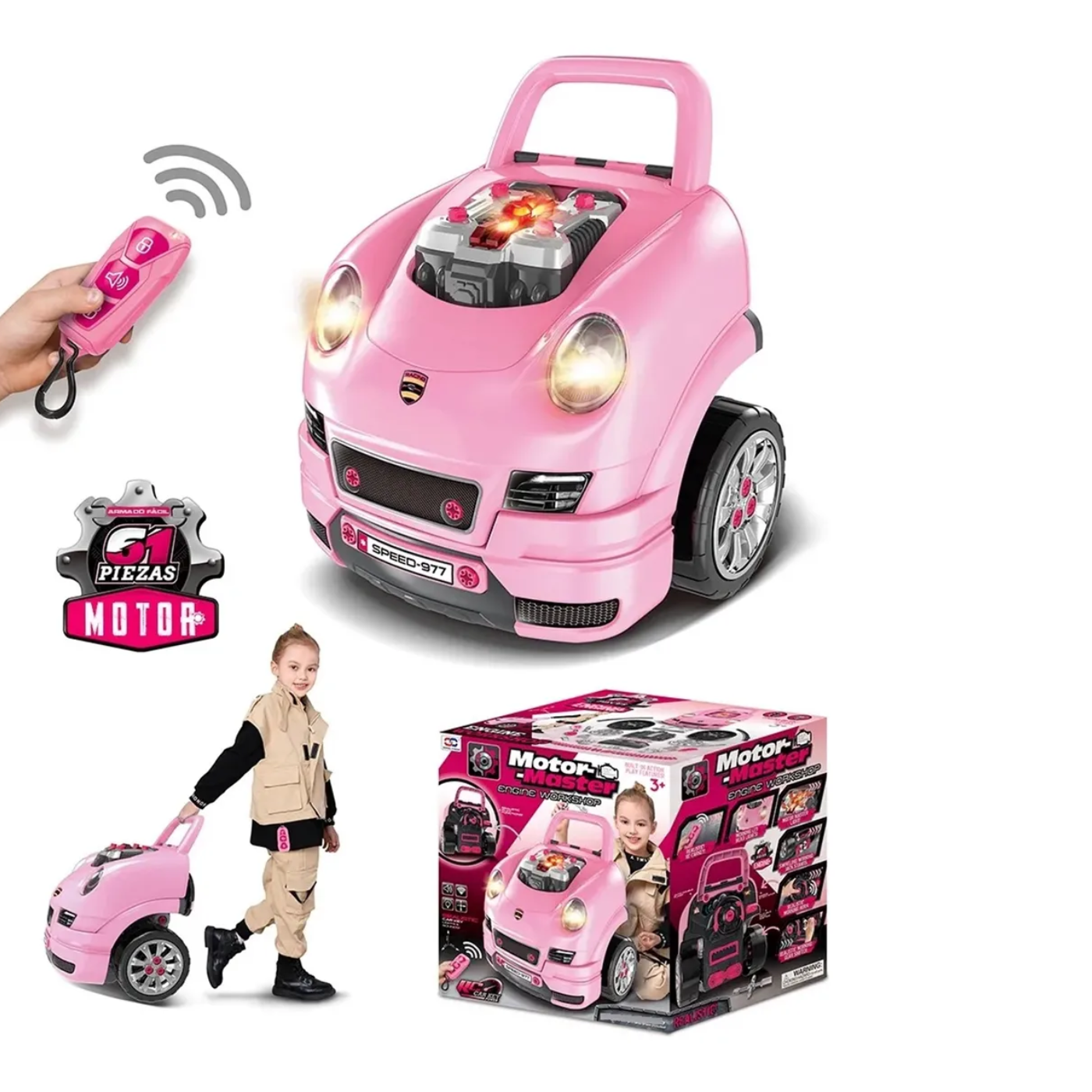 El Carro de Mecánica para Niña es un juguete interactivo diseñado para estimular la creatividad, la imaginación y el aprendizaje a través del juego. Su color rosa vibrante y su diseño pensado para pequeñas exploradoras lo convierten en la opción perfecta para quienes disfrutan armando, reparando y descubriendo cómo funcionan las cosas. Este vehículo permite simular un auténtico taller mecánico, ofreciendo horas de diversión educativa.