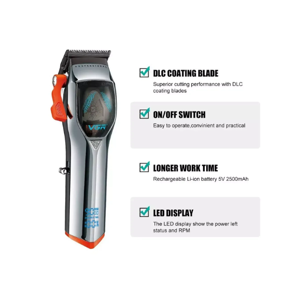 -Batería de larga duración: con una batería de gran capacidad de 2500mAh, este recortador de pelo ofrece un tiempo de uso prolongado con una sola carga, asegurándose de tener suficiente energía para múltiples sesiones de aseo, incluso cuando está lejos de una fuente de alimentación.