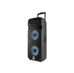 Parlante de fácil desplazamiento; tiene una manija superior, dos laterales y ruedas que te permitirá llevarlo a donde tú quieras. Incluye control remoto para que puedas manejar las diferentes funciones con mayor facilidad.