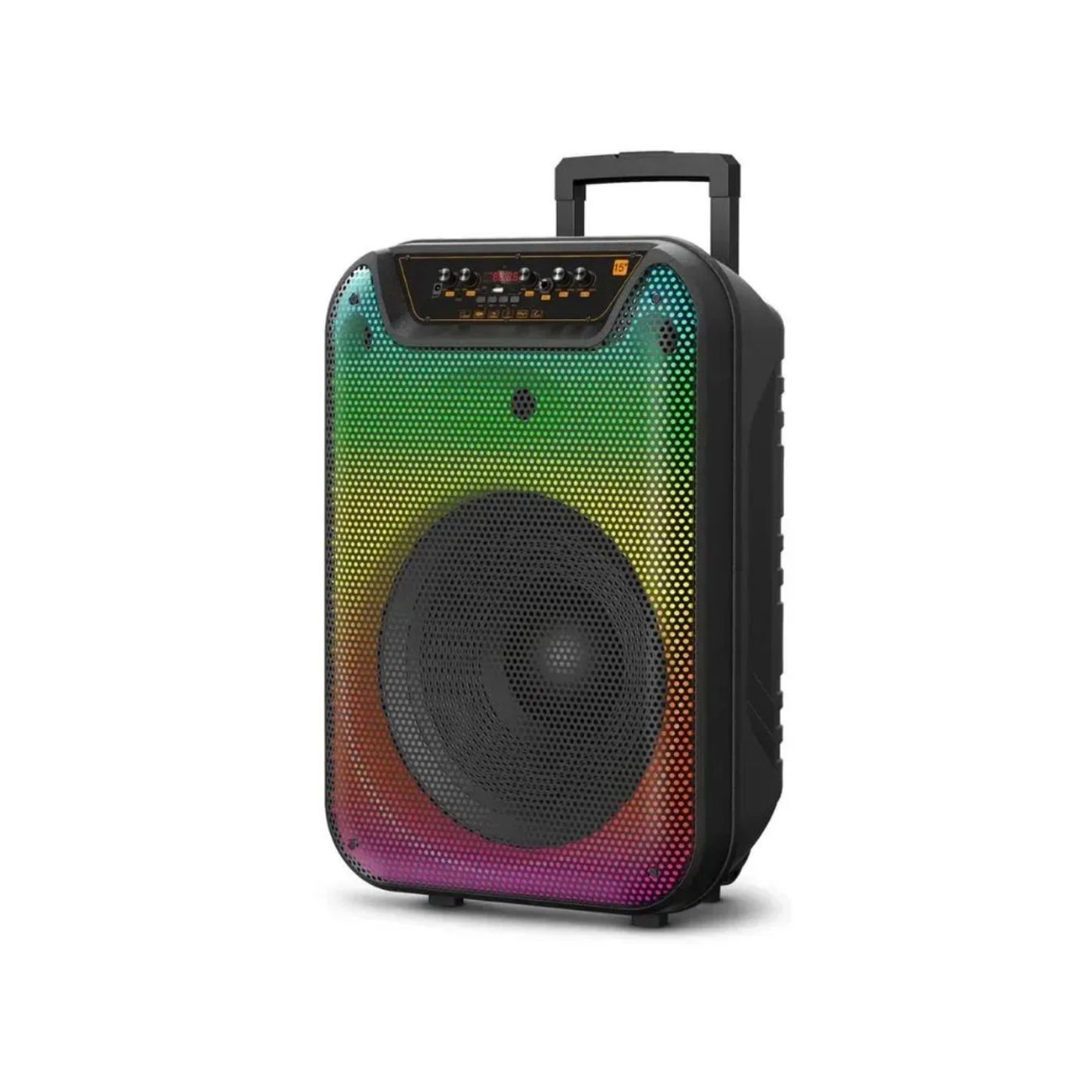 Su iluminación LED RGB tipo flaming crea un ambiente dinámico y moderno, mientras que su conectividad Bluetooth, puertos USB y entrada de tarjeta TF facilitan reproducir tu playlist desde cualquier dispositivo. Además, el micrófono incluido permite realizar divertidas sesiones de karaoke en cualquier momento.