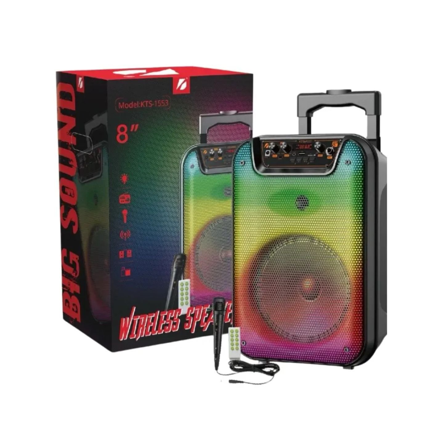 El parlante portátil KTS-1553 está diseñado para acompañarte a cualquier lugar con un sonido potente, claro y envolvente. Su tamaño compacto y batería recargable te permiten disfrutar tu música favorita sin interrupciones, ya sea en casa, reuniones con amigos o actividades al aire libre.