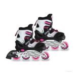 Fabricados con un chasis en aluminio que brinda soporte firme y durabilidad, estos patines cuentan con llantas en PVC y rodamientos ABEC 5, ideales para un desplazamiento suave y controlado. Además, son ajustables a 4 tallas (de la 36 a la 39), lo que garantiza un uso prolongado mientras los pequeños crecen, haciéndolos una excelente inversión para principiantes.