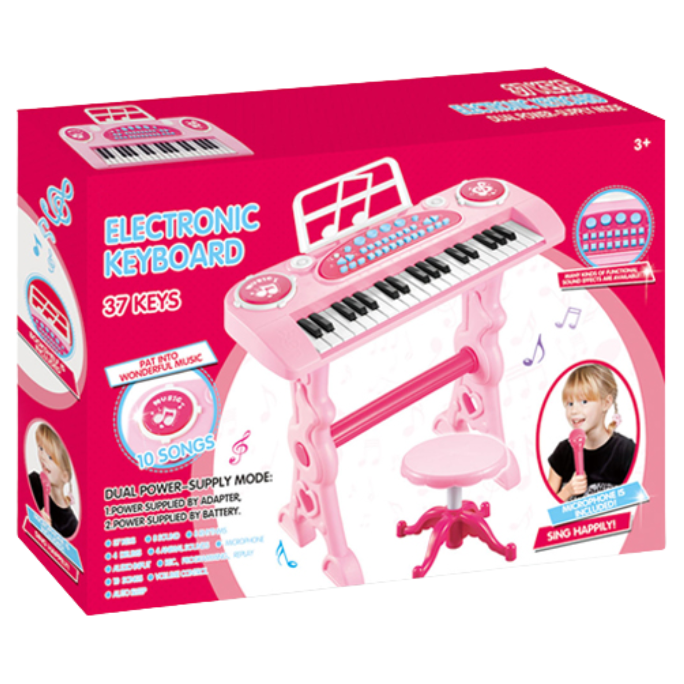 El Piano Infantil de 37 teclas es un juguete educativo perfecto para niñas que aman la música y el juego creativo. Su diseño en color rosado, acompañado de una silla y un micrófono, permite disfrutar de una experiencia musical completa, ideal para cantar, tocar y explorar sonidos mientras desarrollan habilidades motrices y sensoriales. Gracias a sus funciones interactivas, los niños pueden aprender, improvisar y crear melodías de forma divertida.