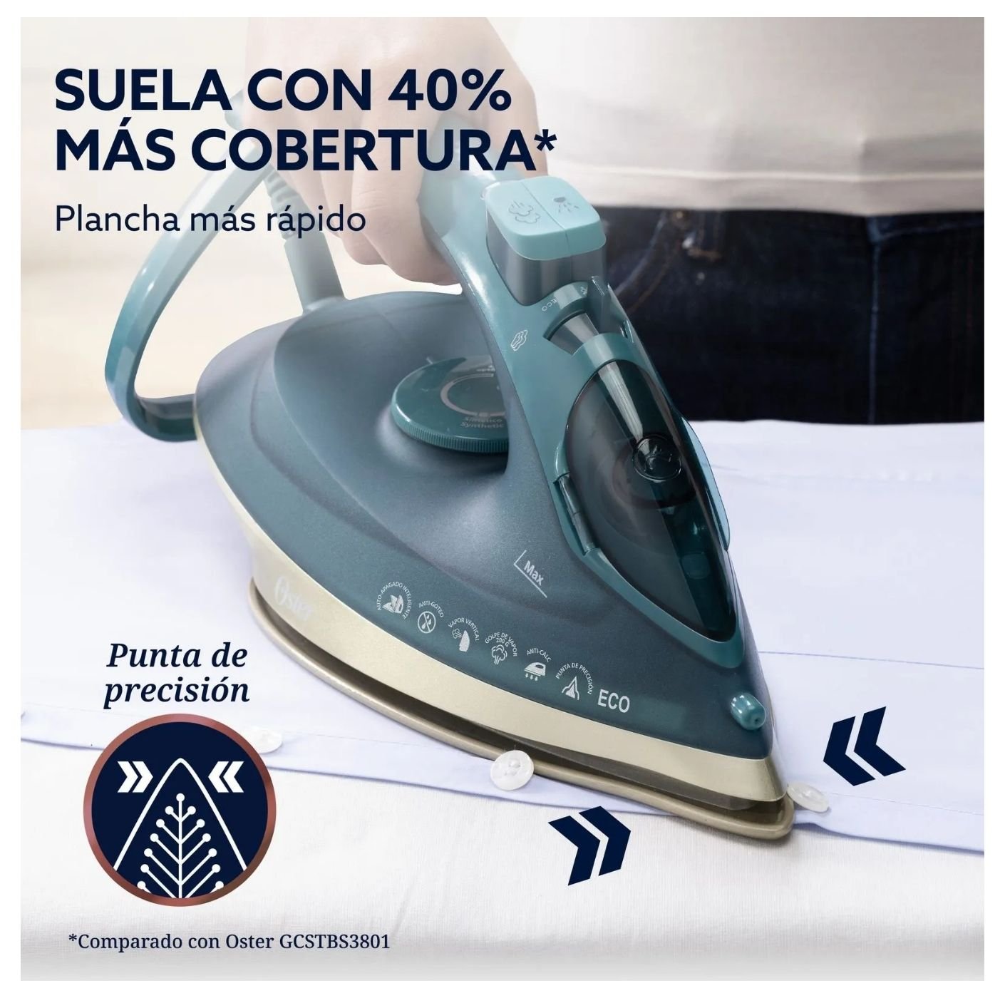 -Genera hasta 40% más vapor para eliminar arrugas difíciles