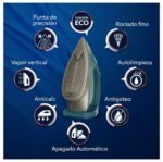 Esta plancha genera hasta 40% más vapor con un poderoso golpe de 200 g/min, ideal para prendas exigentes y telas gruesas. Su suela con 40% más cobertura, mejor deslizamiento y mayor resistencia a rayaduras permite planchar con mayor rapidez y durabilidad. Además, incorpora funciones de seguridad y ahorro energético como apagado automático en tres posiciones y modo ECO, garantizando comodidad y eficiencia en cada uso.