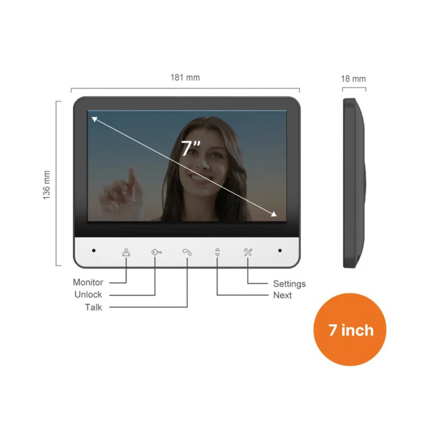 Es una solución inteligente y eficiente para la seguridad y comunicación en hogares y negocios. Con su pantalla interior de 7 pulgadas, cámara Full HD, visión nocturna y funciones avanzadas, este dispositivo te brinda tranquilidad y control sobre el acceso a tu propiedad en todo momento.