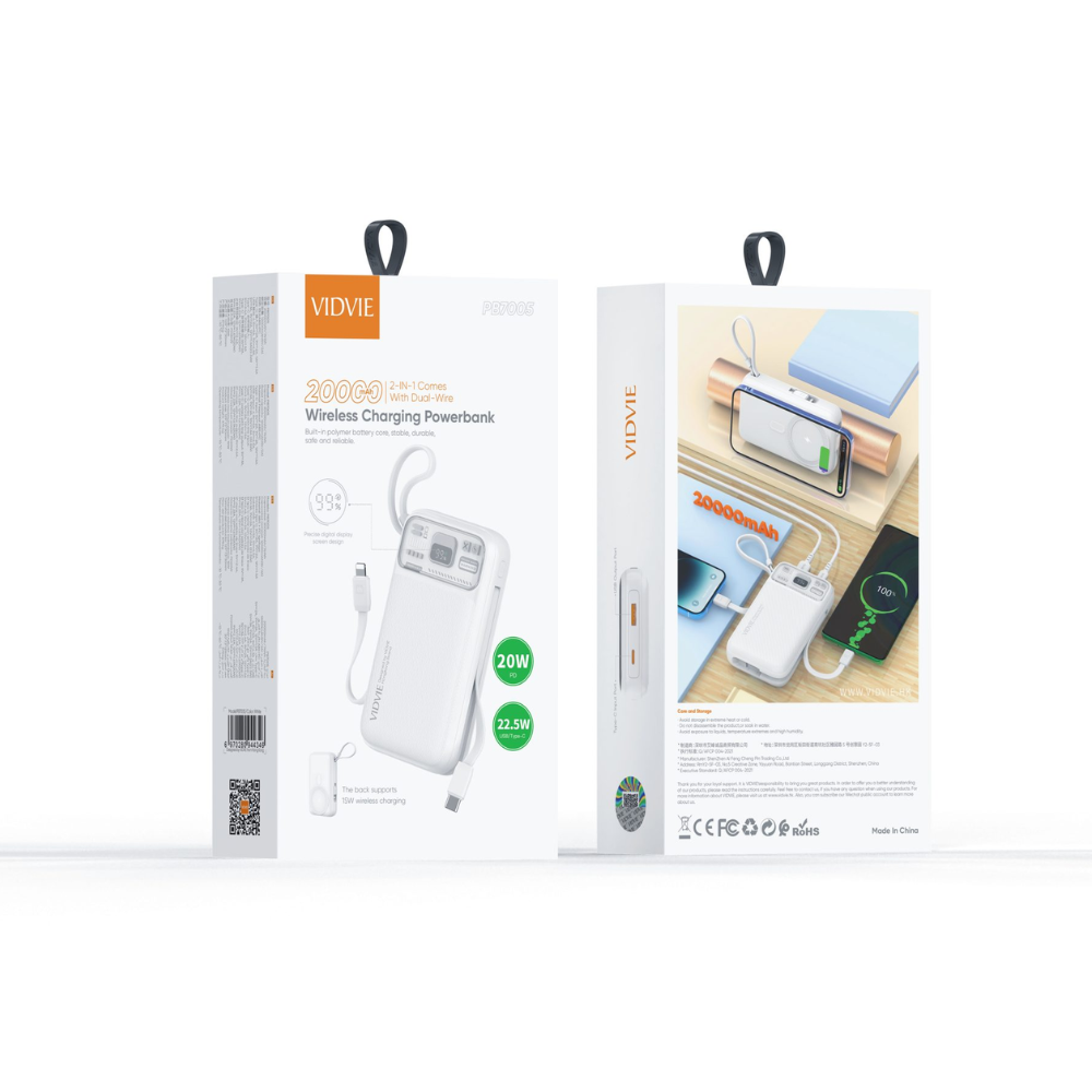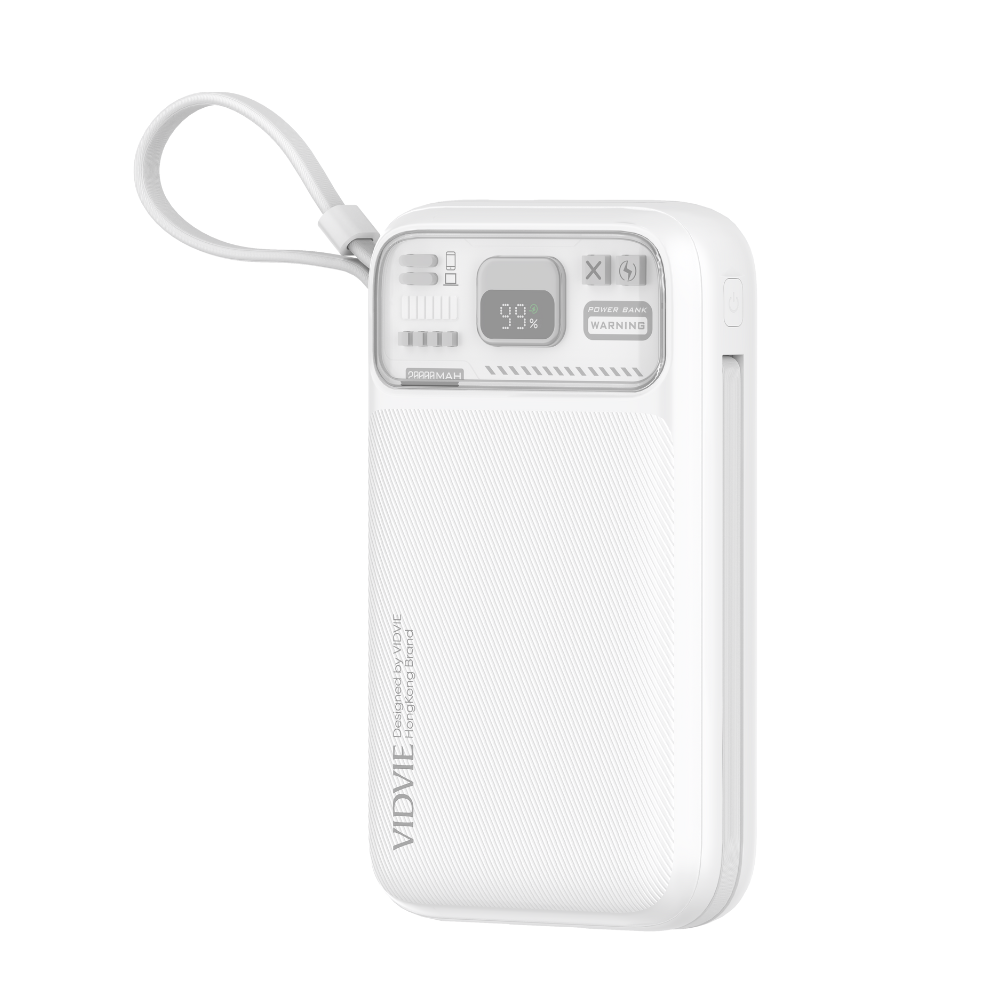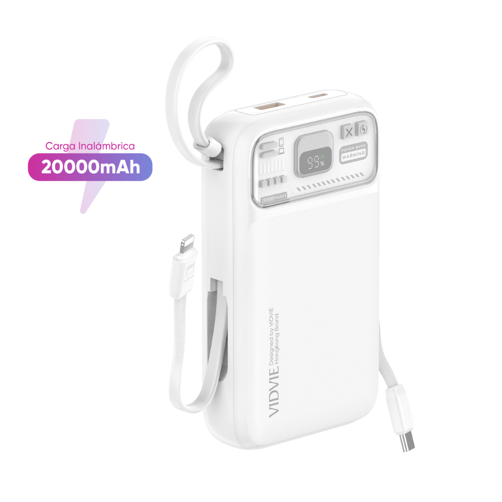 El VIDVIE PB7005 es un power bank premium de 20000 mAh, diseñado para quienes buscan potencia, estilo y funcionalidad en un solo dispositivo. Su carcasa frontal de acrílico transparente proyecta el estado de carga en LED y exhibe sus circuitos internos con un acabado moderno y exclusivo. La cubierta central, fabricada en material termoplástico de alta calidad, asegura resistencia y durabilidad.