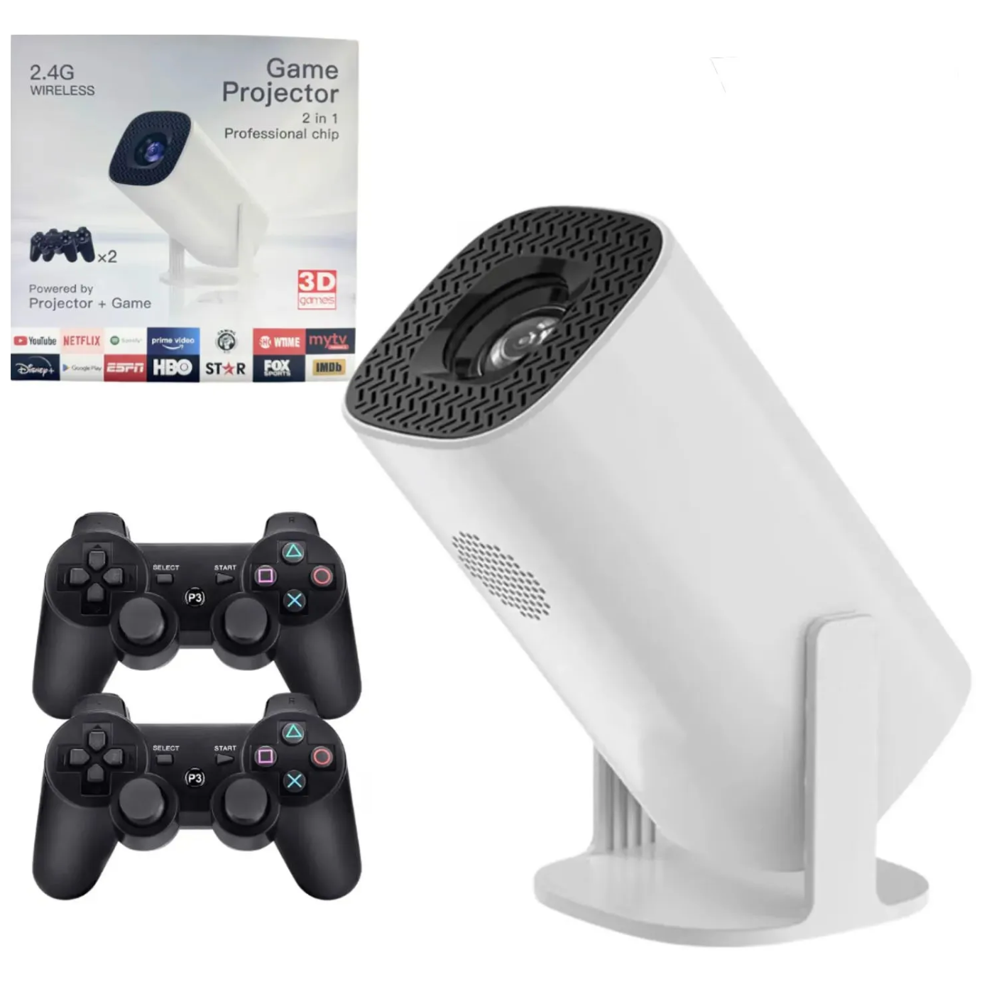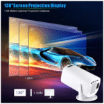 El Proyector P300 Wifi 5G Android Game es un videoproyector inteligente diseñado para transformar cualquier espacio en una sala de cine o zona gamer. Su diseño giratorio de 180° permite proyectar en la pared, el techo o cualquier ángulo, ideal para disfrutar películas acostado, jugar videojuegos o hacer presentaciones en espacios amplios. Con capacidad para crear una pantalla gigante de 40” a 200 pulgadas, ofrece una experiencia visual inmersiva dentro y fuera de casa.