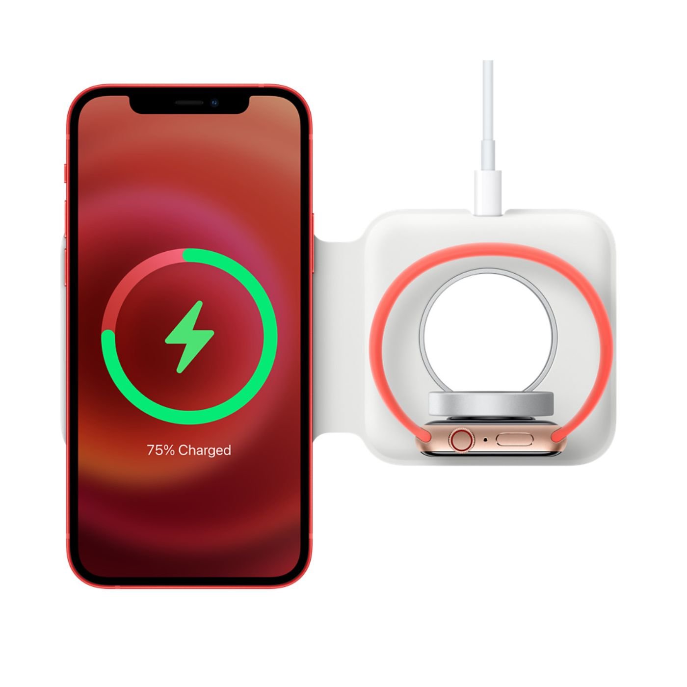 El MagSafe Duo de Apple es la solución ideal para quienes buscan cargar varios dispositivos Apple de forma simultánea y eficiente. Con su elegante diseño plegable, compacto y portátil, este cargador permite recargar tu iPhone, Apple Watch, estuche de AirPods o cualquier dispositivo con certificación Qi, todo al mismo tiempo y sin complicaciones.