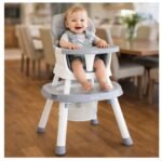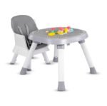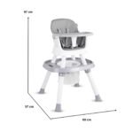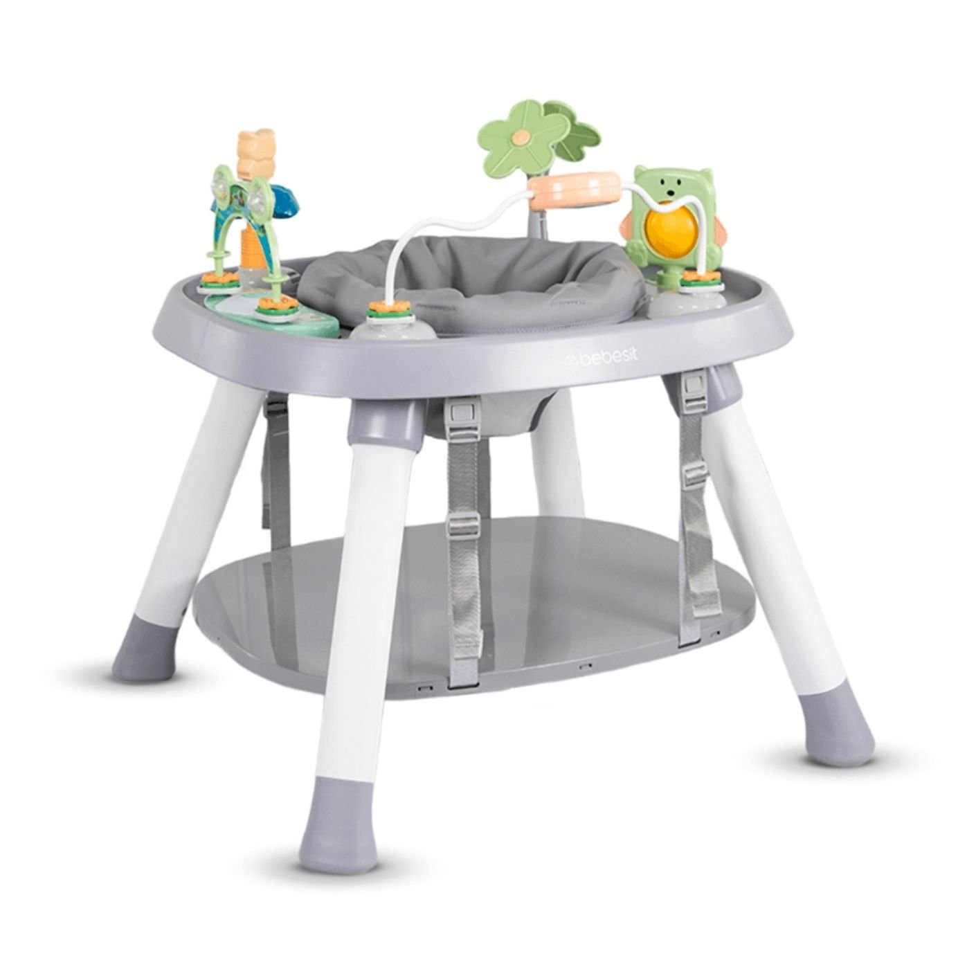 Sus múltiples configuraciones se realizan mediante pines de ajuste sin necesidad de herramientas, permitiendo transformar la silla de forma rápida y práctica. Incorpora bandeja removible ajustable en 3 niveles, asiento acolchado con tela hipoalergénica y cinturón de seguridad de 5 puntos regulable, ofreciendo comodidad, estabilidad y seguridad en cada uso. Además, incluye un centro de actividades con 5 juguetes que estimulan el desarrollo sensorial del bebé.