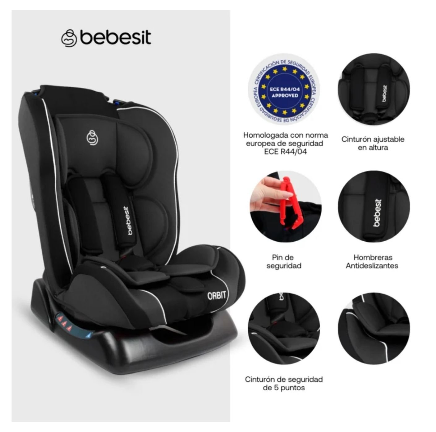 La Silla de Auto Bebé Orbit LX Black ZY19BK Bebesit es una silla multigrupo (0, 1 y 2) diseñada para acompañar a tu hijo desde recién nacido hasta 25 kg, brindando seguridad y comodidad en cada trayecto. Cuenta con certificación europea, protección lateral, 3 posiciones de reclinado y arnés de 5 puntos para un viaje seguro y confiable.