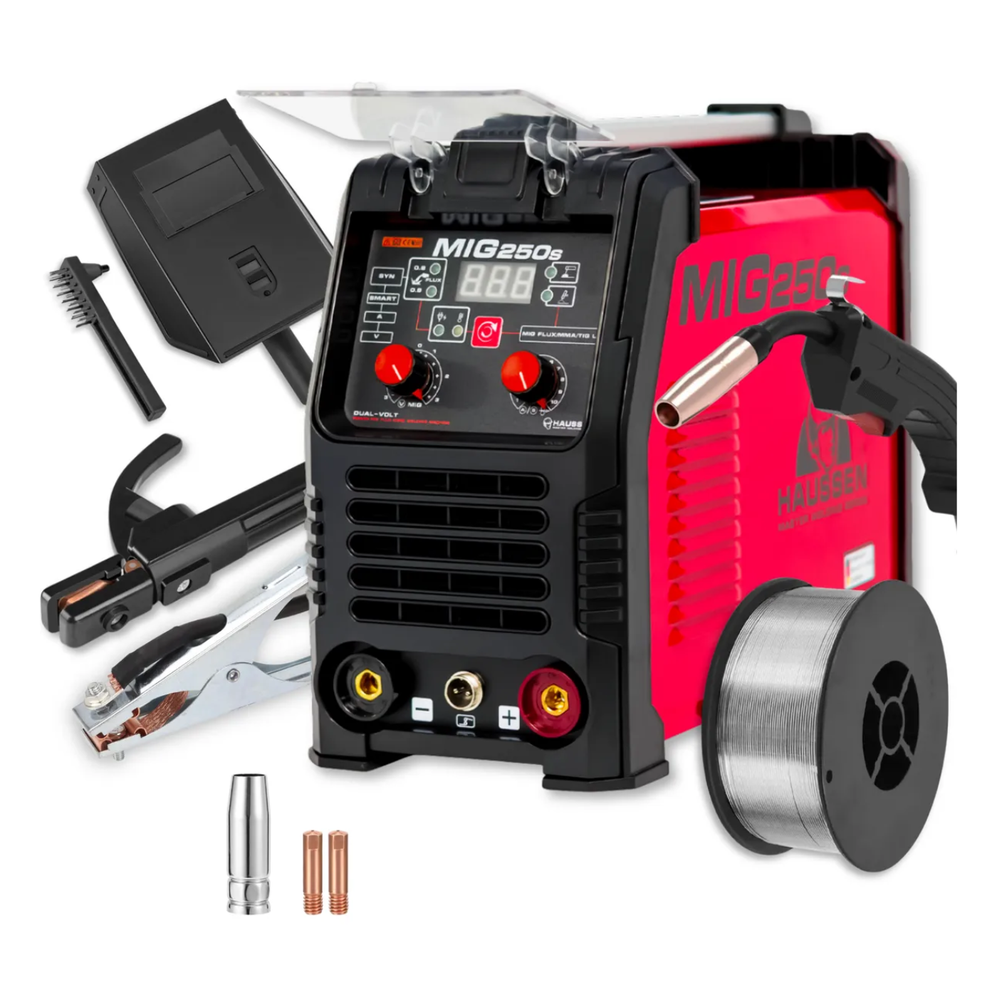 El soldador Haussen Inversor MIG250s ProTool es un equipo multiproceso diseñado para brindar potencia, versatilidad y eficiencia en todo tipo de trabajos de soldadura. Gracias a su tecnología inverter y funciones avanzadas, ofrece un arco estable y un rendimiento superior tanto para profesionales como aficionados.