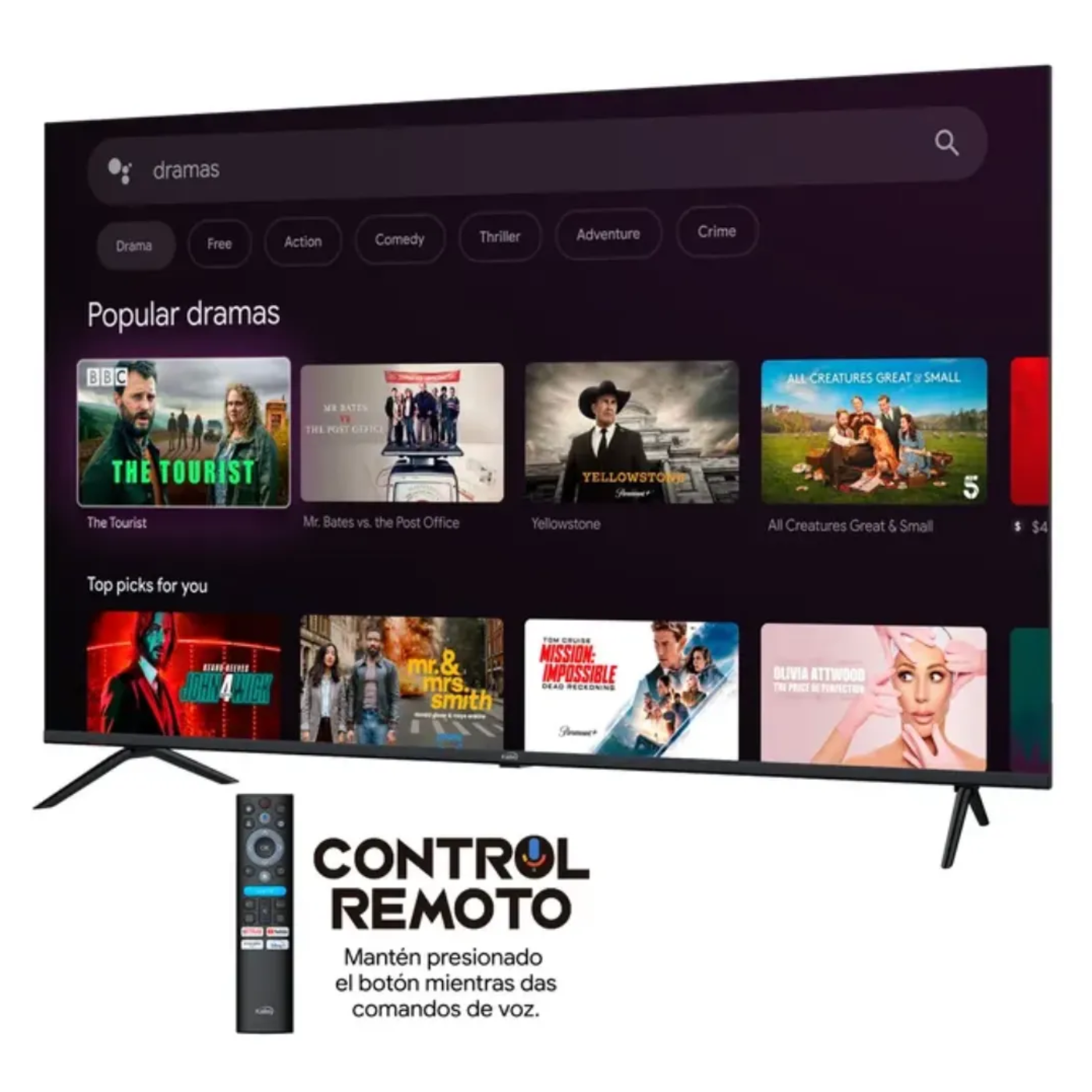 Además, integra Google TV, brindándote acceso a más de 10.000 aplicaciones en una interfaz moderna, intuitiva y personalizable para toda la familia. Gracias a la tecnología Dolby Vision y Dolby Atmos, junto con su procesador Ai Engine, este televisor optimiza automáticamente cada escena para ofrecer una experiencia audiovisual más realista, fluida e impactante.