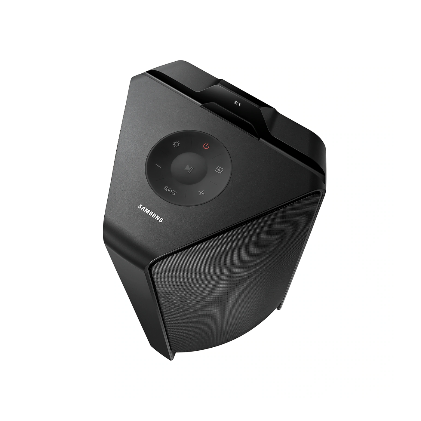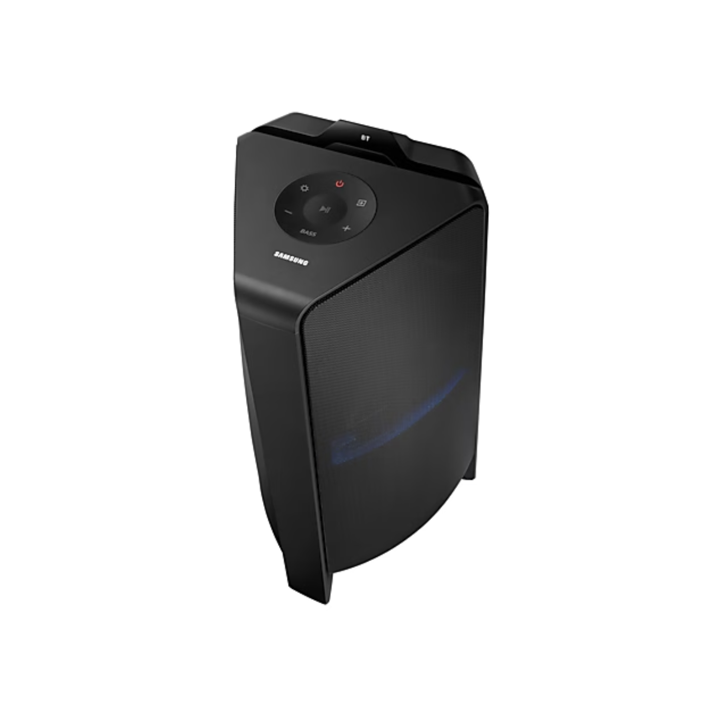 La torre de sonido Samsung MX-T70 eleva tus reuniones a otro nivel con un diseño robusto, sonido bidireccional y potencia máxima de 1500W. Su sistema de audio avanzado amplía el área de sonido, logrando un efecto envolvente en cada rincón del espacio. Además, el potenciador de bajos añade intensidad a cada ritmo, ideal para fiestas o eventos donde el audio es protagonista.